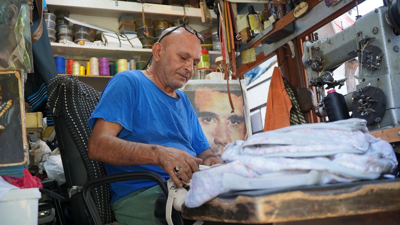 Çanta imalatına çırak olarak adım atan Bayram Ali Şimşek, 56 yıldır mesleğini sürdürüyor. İmalattan yetiştiğini, yıllar boyunca atölye işletip tamir işine yöneldiğini anlatan Şimşek, "12 yaşımda bu işe başladım. 56 senedir bu işi yapıyorum. Şu anda 100 metrekarelik imalathanem boş duruyor, çünkü iş yok. Tamir olmazsa sabahtan akşama otururuz. Belediye sağ olsun bize 6 metrekarelik dükkan verdi, burada ayakta kalmaya çalışıyoruz" diye konuştu.