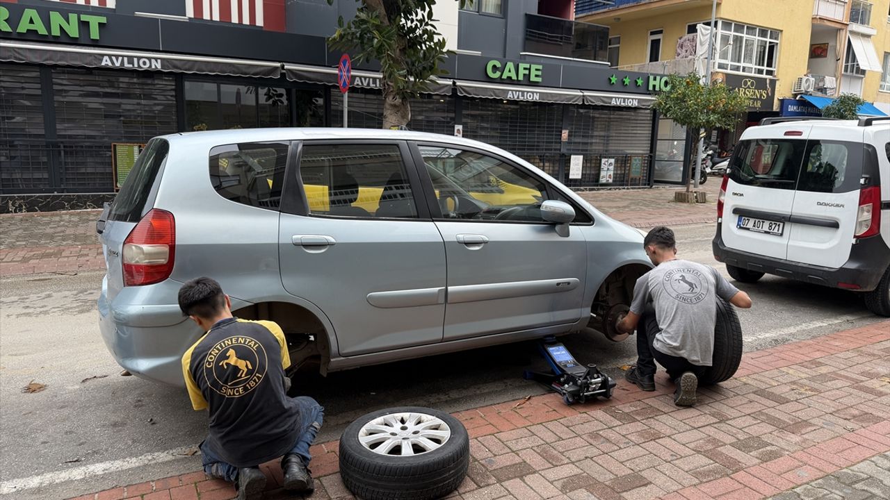 Antalya'nın Alanya ilçesinde bir kişinin park halindeki yaklaşık 20 aracın lastiklerini kesici aletle patlatması güvenlik kamerasınca kaydedildi.