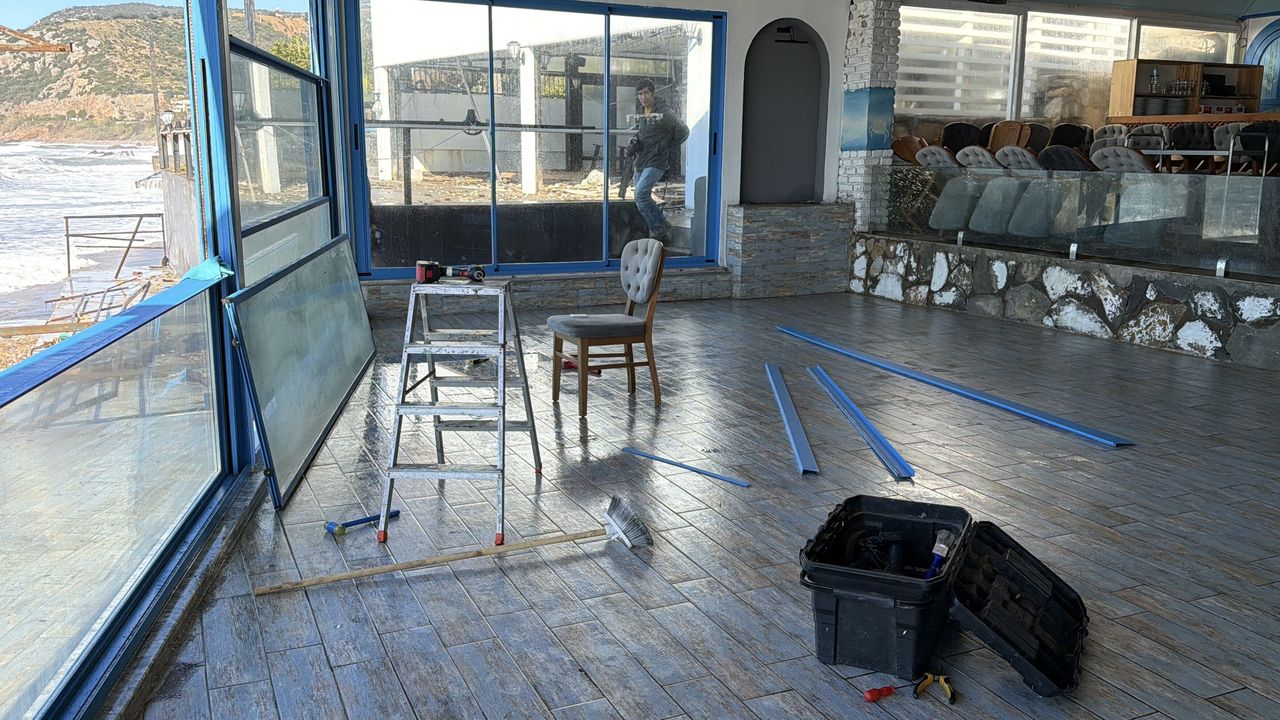 Antalya'nın Alanya ilçesinde fırtınanın etkisiyle oluşan dev dalgaların restorana hasar vermesi iş yerinin güvenlik kamerasınca kaydedildi.