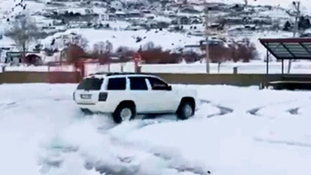 Öte yandan sürücünün drift yaptığı anlar dron kamerasınca kaydedildi.