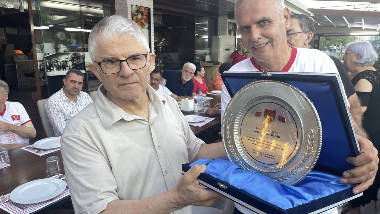 Konuşmaların ardından eski askerleri Özcan'a plaket verdi ve Fenerbahçe forması hediye etti.