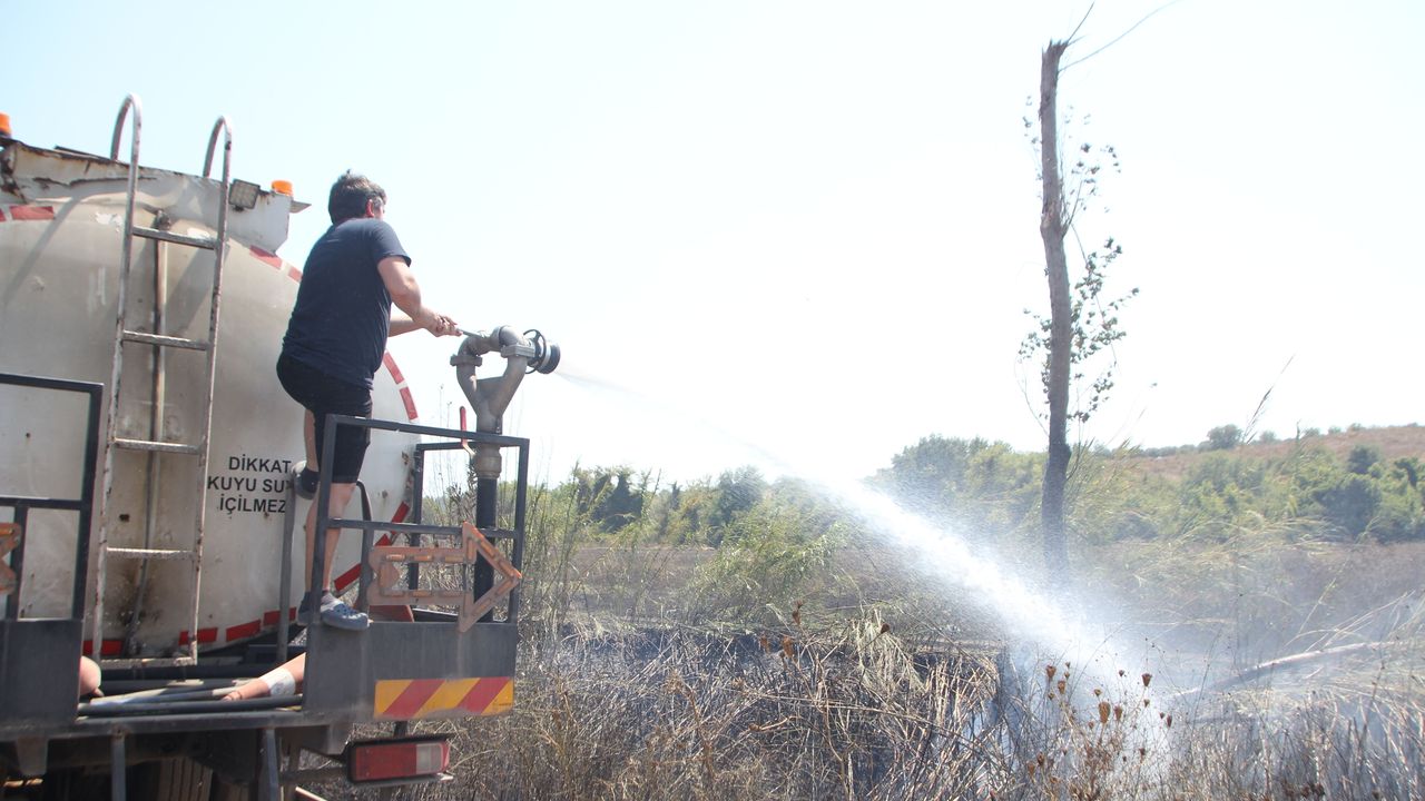 Dikmen Mahallesi Aktepe mevkisinde sazlık alanda bilinmeyen nedenle yangın çıktı.