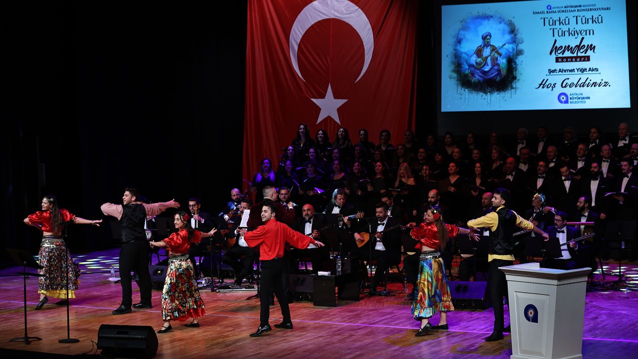 Anadolu'nun seçkin türkülerinin seslendirildiği 'Türkü Türkü Türkiyem Hemdem' konseri, Antalya'da sanatseverlerle buluşturuldu.