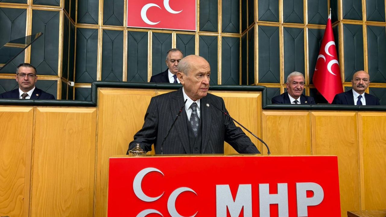 Ankara'dan dünyanın genel tablosuna baktıklarında ümit var olacakları, memnuniyet duyacakları, yüreklerine su serpecek bir aydınlık, bir arayış veya dört başı mamur bir amaç görülmediğini vurgulayan Bahçeli, 'Buna karşılık Türkiye hem bölgesinde hem de küresel arenada istikrar adası gibi sivrilmektedir. Sayın Cumhurbaşkanımızın, Sayın Dışişleri Bakanımızın ve Cumhurbaşkanlığı Kabinesi'nin kesintisiz diplomatik atılımları, ihtilafları diyalogla çözme çabaları gerçekten takdir ve tebrike ziyadesiyle layıktır. Masada ve sahada aynı anda olabilmeyi başaran bir Türkiye ile hepimizin iftihar etmesi esasen bir manevi görevdir. Nerede bir sorun varsa Türkiye müessir bir şekilde oradadır. Komşu ülkelerin siyasi birliği ve toprak bütünlüğü ile egemenlik haklarını herhangi bir tereddüde düşmeden savunan ve sahiplenen; barış, huzur ve istikrar özlemlerinin gerçekleşmesi için fincancı katırlarını ürkütmekten kaçınmayan bir Türkiye gerçeği, hepimiz adına bir talihtir. Sadece insanımızın saadetine hizmetle kifayet etmeyen, dahası insanlığın selameti, bölgesel ve küresel istikrar adına gövdesini taşın altına koymayı göze almış bir Türkiye tarihimizin saklı kalan ülkülerini gururla takip ve temin gayretindedir. Bozuk plak gibi aynı nakarata takılı kalanların, ezbere dayalı kara propagandayı seslendirmeyi marifet sayanların zoruna gitse de alayının birden uykuları kaçsa da diyorum ki; Türk ve Türkiye Yüzyılı'nın sancağı el birliğiyle açılmış, süper güç Türkiye'nin muktedir adımları hamdolsun duyulmaya başlamıştır' diye konuştu.