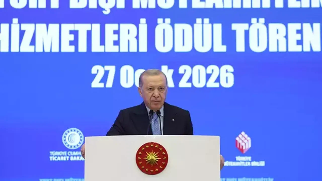 Erdoğan, yıllık enflasyonun yüzde 30,89 ile son 49 ayın en düşük seviyesine indiğini işaret ederek, 'Merkez Bankası rezervlerimizdeki artış aynı şekilde devam ediyor. Bankamızın rezervleri tarihimizde ilk defa 200 milyar dolar bandını aştı. 2002 yılında sadece 27,5 milyar dolardan devraldığımız rezervleri geçen hafta itibarıyla 205 milyar 177 milyon dolara yükselttik. İstihdamda da aynı tabloyu görüyoruz. Mevsim etkisinden arındırılmış işsizlik oranımız son 31 aydır tek haneli seyrini koruyor. Yatırım, üretim, istihdam ve ihracat odaklı büyüme stratejimizin olumlu etkilerine pek çok alanda şahit oluyoruz. Ekonomideki bu olumlu görünüm, doğal olarak ticaret performansımıza da yansımaktadır. Küresel talebin zayıfladığı ve korumacılığın arttığı 2025 yılında Türkiye, üretim gücünü ve rekabetçiliğini koruyarak mal ihracatında 273,4 milyar dolarla Cumhuriyet tarihinin rekorunu kırmıştır. 2025 yılında ihracatımız bir önceki yıla kıyasla net 11,7 milyar dolar artış göstermiştir. Hizmetler ihracatında da hamdolsun hedeflerimizin ötesine geçtik. 2024 yılında 115 milyar dolar olan hizmet ihracatı hedefimizi 117,2 milyar dolarla geride bırakmıştık. 2025 yılında 121 milyar dolar hizmet ihracatı hedefimize yıllıklandırılmış olarak daha eylül ayında ulaştık. Hizmetler ihracatımızın 2025 yılı hedefini aşarak, inşallah 122,5 milyar doları bulacağına inanıyoruz. Hizmetler sektöründeki başarılarımıza imza atan lojistik ve taşımacılıktan turizme, bilişim ve yazılımdan dizi ve film yapımlarına, eğitimden sağlık turizmine, müteahhitlikten fuarcılık çalışmalarına kadar çeşitli hizmet sektörlerinde faaliyet gösteren tüm ihracatçılarımızı kutluyorum. Geçtiğimiz sene 2025 yılı için mal ve hizmet ihracatına yönelik hedefimizi 390 milyar dolar olarak paylaşmıştım. Bugün Bakanlığımızın tahminlerine göre mal ve hizmet ihracatımızın 396,5 milyar dolarla bu hedefi aştığını memnuniyetle ifade etmek isterim' açıklamasında bulundu.