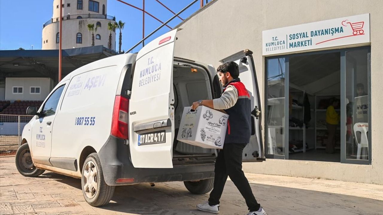 Kumluca Belediyesi tarafından 'Paylaştıkça Güçleniyoruz' etiketiyle hazırlanan koliler, belediyenin Sosyal Dayanışma Marketi aracılığıyla ihtiyaç sahibi ailelere dağıtılıyor.