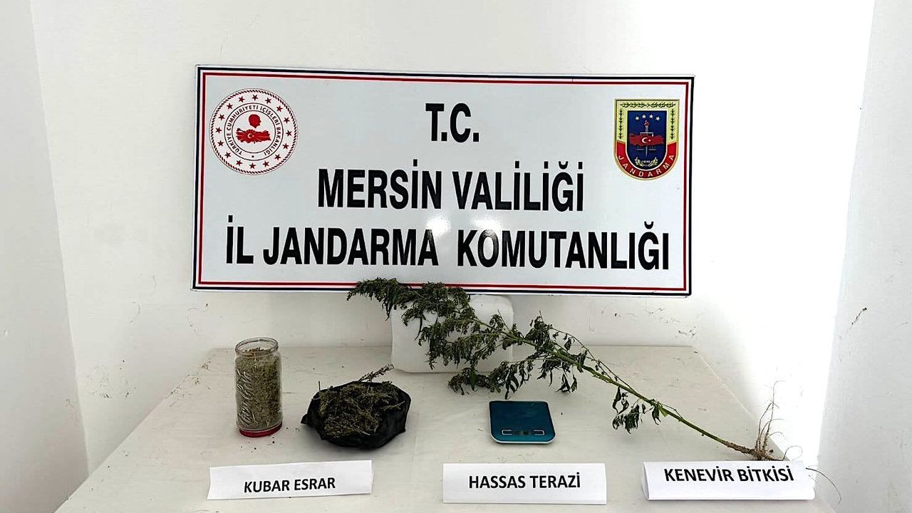 Mersin'de 1 kilogram esrar ve 188 kök Hint keneviri ele geçirildi, 1 şüpheli tutuklandı.