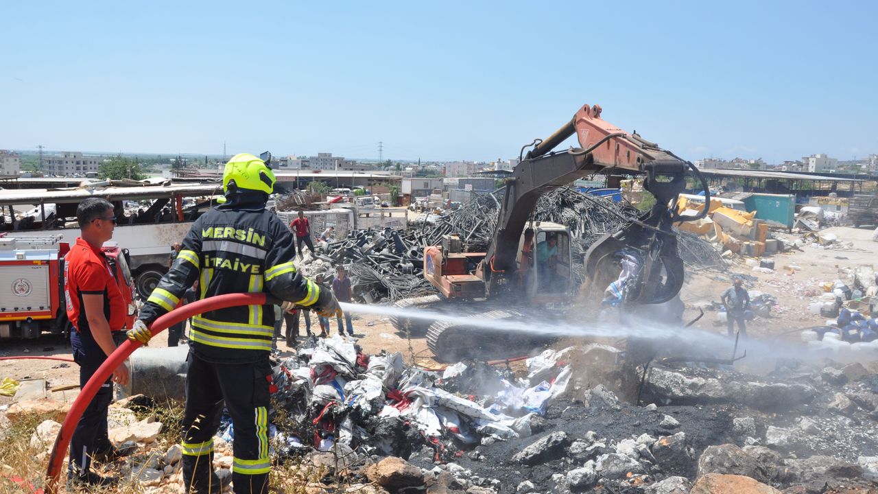 Mersin'in Silifke ilçesinde, sanayi sitesinde hurdalıkların bulunduğu alanda çıkan yangın söndürüldü.