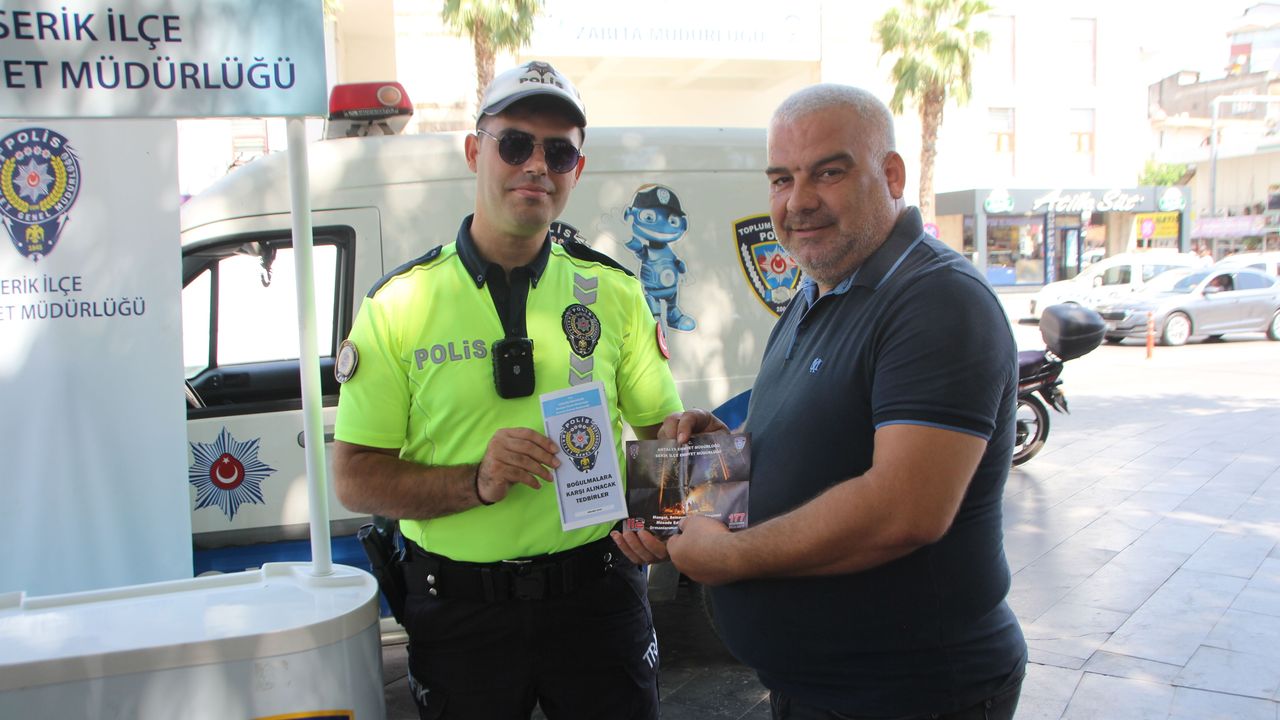 Antalya'nın Serik ilçesinde polis ekipleri, orman yangınları, boğulma, plajlarda hırsızlık olaylarına karşı vatandaşı uyardı. İlçe Emniyet Müdürlüğü ekipleri, Çınaraltı Meydanı'nda stant açtı.