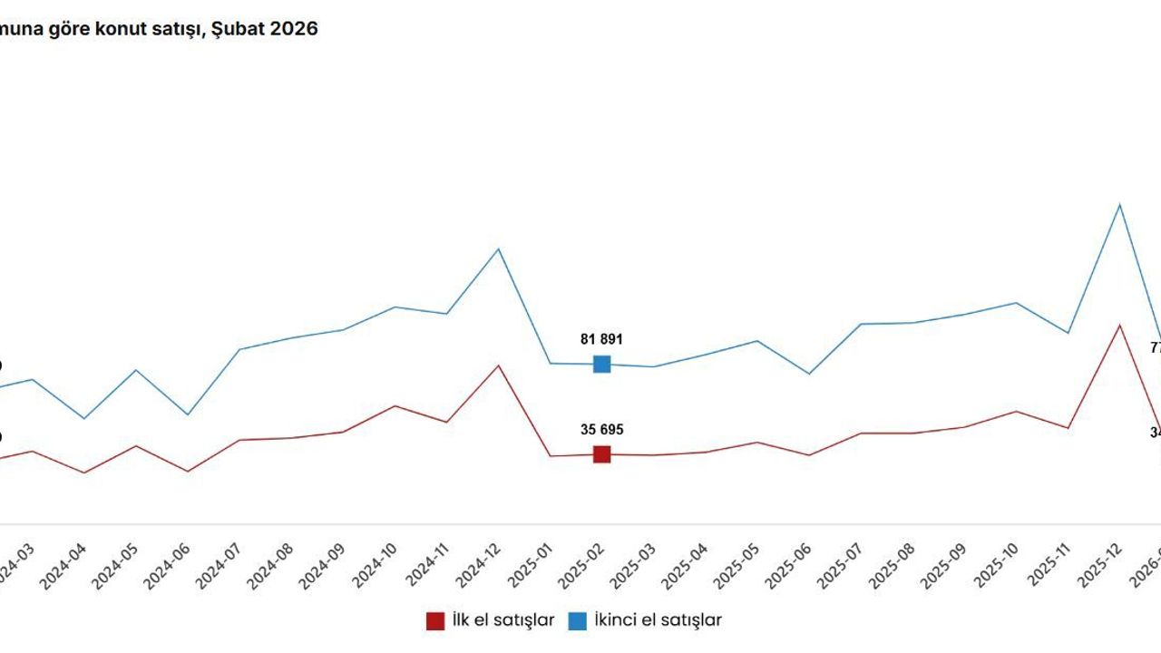TÜİK, Şubat 2026 dönemine ilişkin konut ve iş yeri satış istatistiklerini açıkladı. Buna göre; Türkiye genelinde ilk el konut satış sayısı şubat ayında bir önceki yılın aynı ayına göre yüzde 5,9 oranında artarak 37 bin 785 oldu. İkinci el konut satışları da şubat ayında bir önceki yılın aynı ayına göre yüzde 6 oranında artarak 86 bin 764 oldu. Toplam konut satışları içinde ilk el konut satışlarının payı yüzde 30,3, ikinci el konut satışlarının payı yüzde 69,7 oldu.