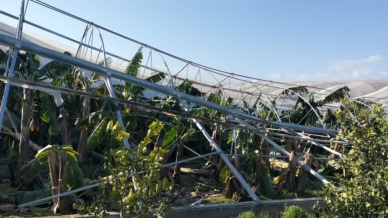Türkiye Ziraat Odaları Birliği (TZOB) Genel Başkanı Şemsi Bayraktar, Antalya'nın Manavgat ilçesinde fırtına ve hortumdan etkilenen sera ve tarım alanlarını inceledi.
