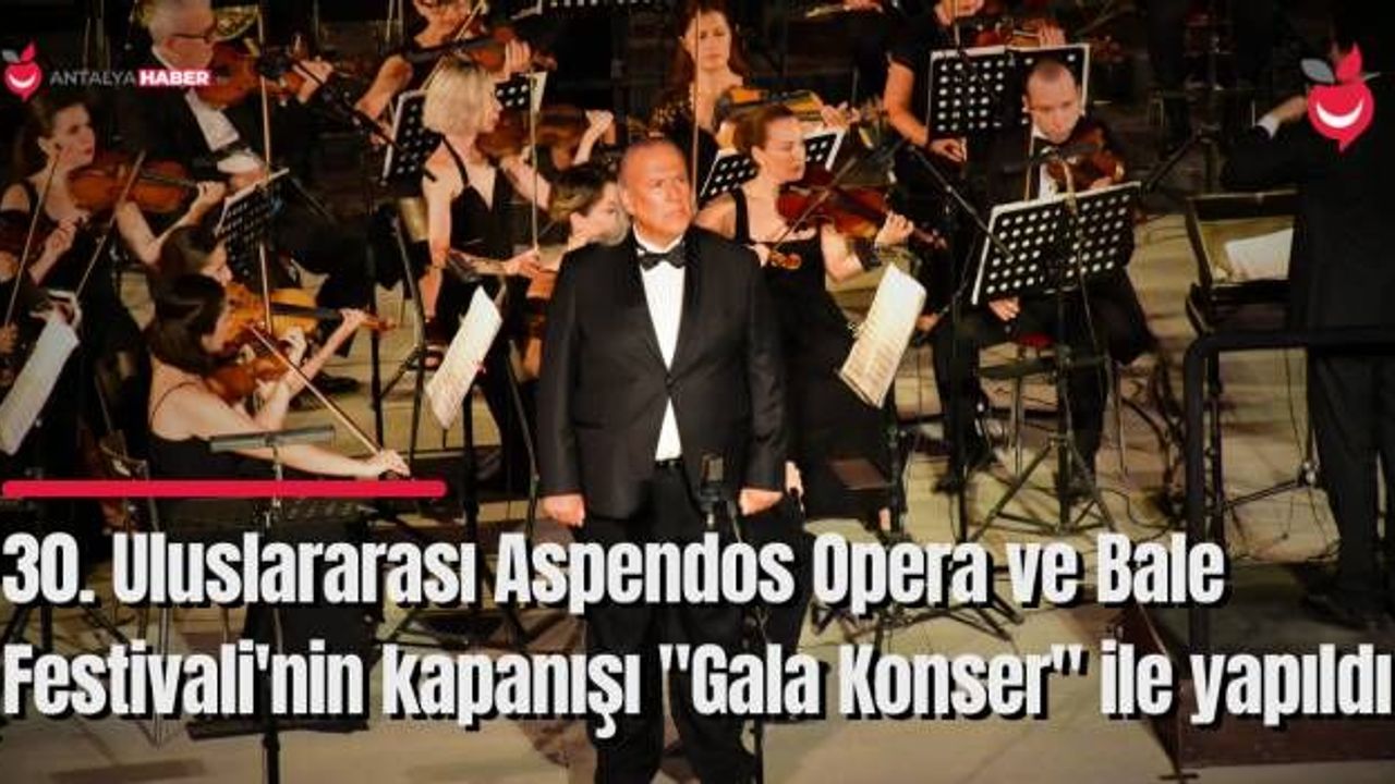 Kültür ve Turizm Bakanlığı Devlet Opera ve Balesi Genel Müdürlüğünce düzenlenen 30. Uluslararası Aspendos Opera ve Bale Festivali, "Gala Konser" ile sona erdi. Aspendos Antik Tiyatrosu'ndaki festivalin kapanışında, Devlet Opera ve Balesi sanatçıları sopranolar Gülbin Günay, Nurdan Küçükekmekçi, Perihan Diana Nayır ve Feryal Türkoğlu, mezzosoprano Ferda Yetişer, tenor Erdem Erdoğan ve bas Tuncay Kurtoğlu sahne aldı. Konseri, Antalya Valisi Hulusi Şahin, Devlet Opera ve Balesi Genel Müdürü Tan Sağtürk, Antaly