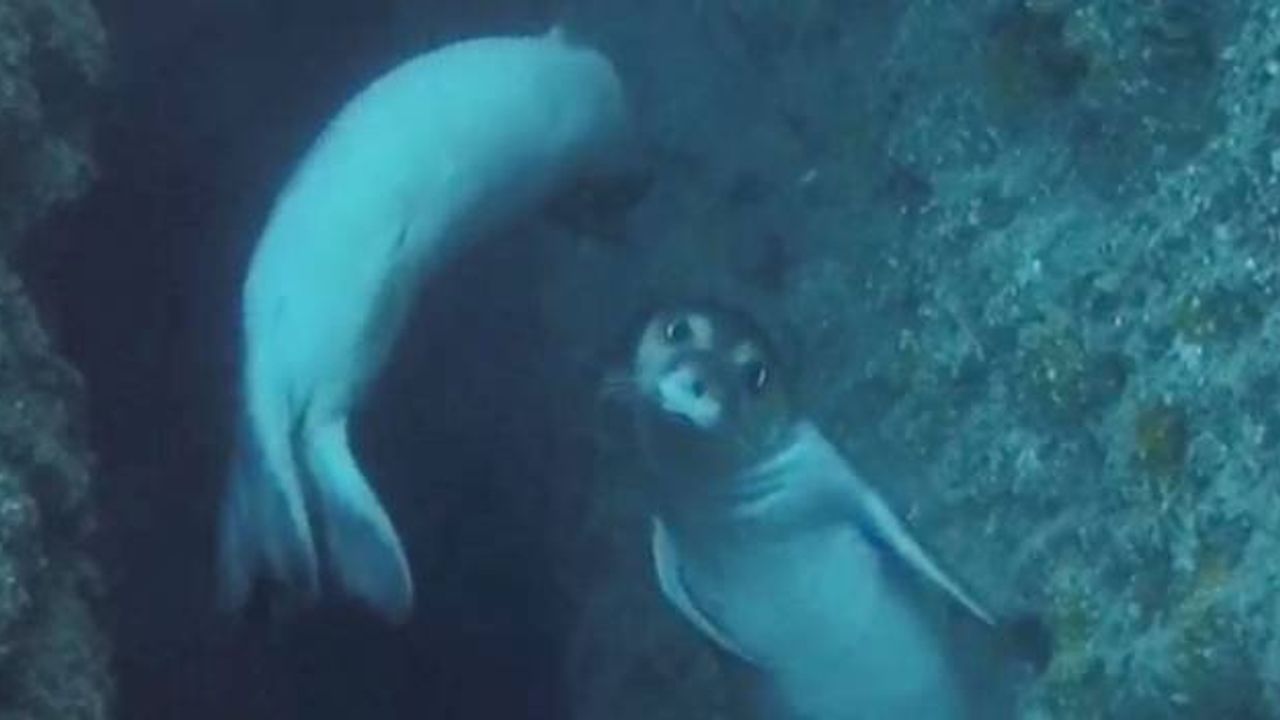 Akdeniz foklarının 'aşk' dansı kameralara yansıdı