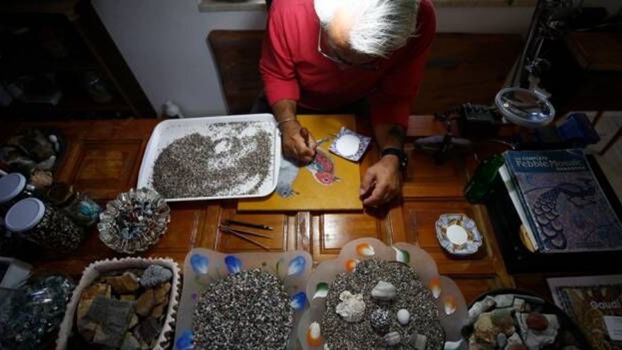 Antalya'da mozaik sanatçısı Süleyman Sarı , sahillerden topladığı binlerce çakıl taşını sabır ve özveriyle tabloya aktararak yaklaşık 1 yılda bir sanat eseri ortaya çıkarıyor.