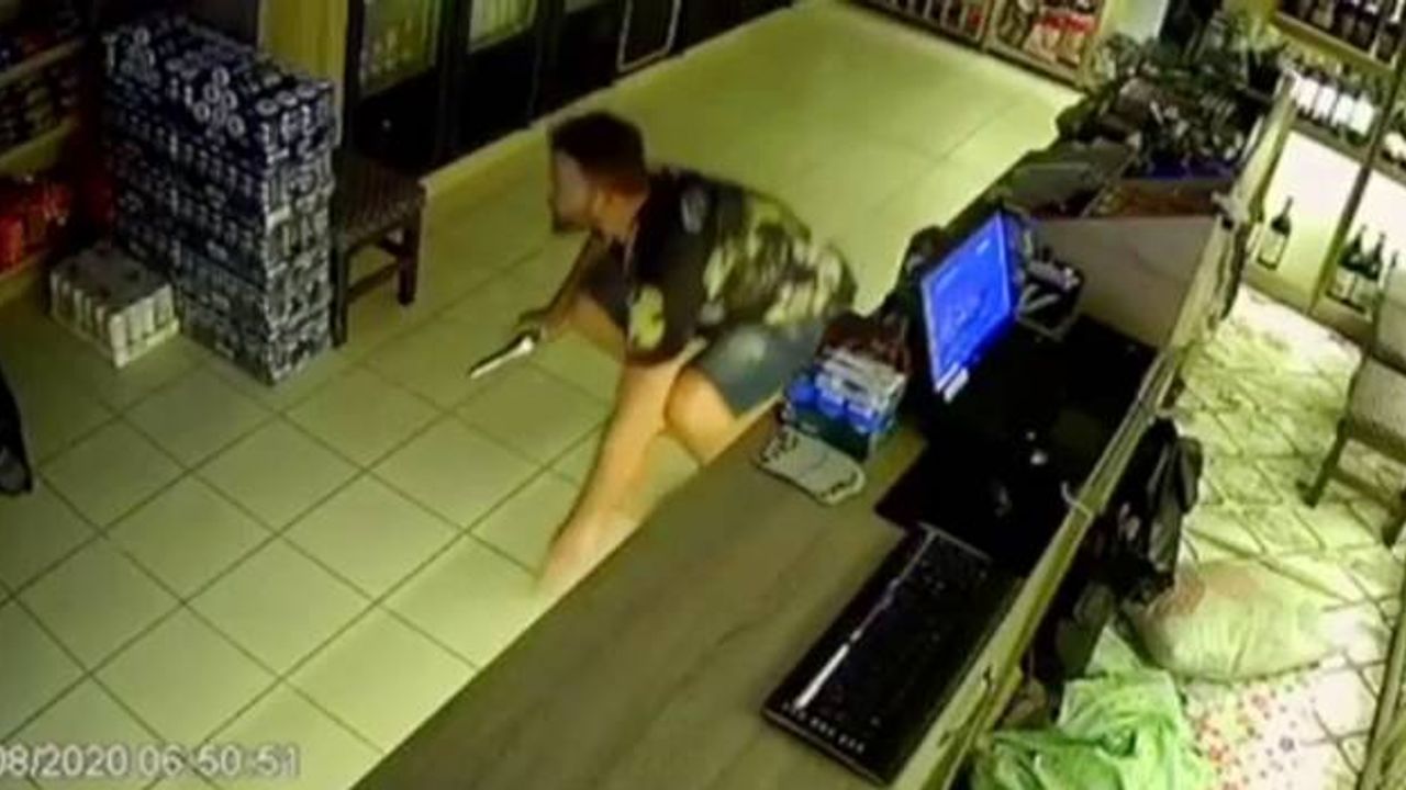 Antalya'da bir market sahibi, kendisi içerdeyken hırsızlık amacıyla iş yerine girmeye çalışan 2 kişiyi, silahını çekip yakaladı. Olay anı iş yerinin güvenlik kamerasına yansıdı.Elinde tabancasıyla yattığı standın arkasından çıkan iş yeri sahibi, dizleri üzerinde ilerleyerek kapıyı açtı. İş yerinin önüne çıktıktan sonra yan tarafa geçip, kameranın açısından çıkan iş yeri sahibi, yan kapıdan hırsızlık amacıyla dükkanına giren 2 kişiyi yakaladı