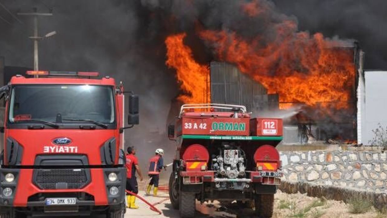 Mersin'de Mobilya Fabrikasında Çıkan Yangına Müdahale Ediliyor