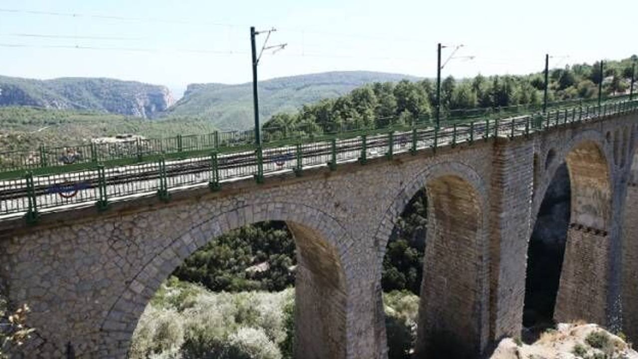 Adana'nın Karaisalı ilçesinde 1912'de Almanlar tarafından inşa edilen Varda Köprüsü ile etrafındaki tabiat parkı ve kanyon, Anadolu Ajansı (AA) ekiplerince FPV dronla görüntülendi.