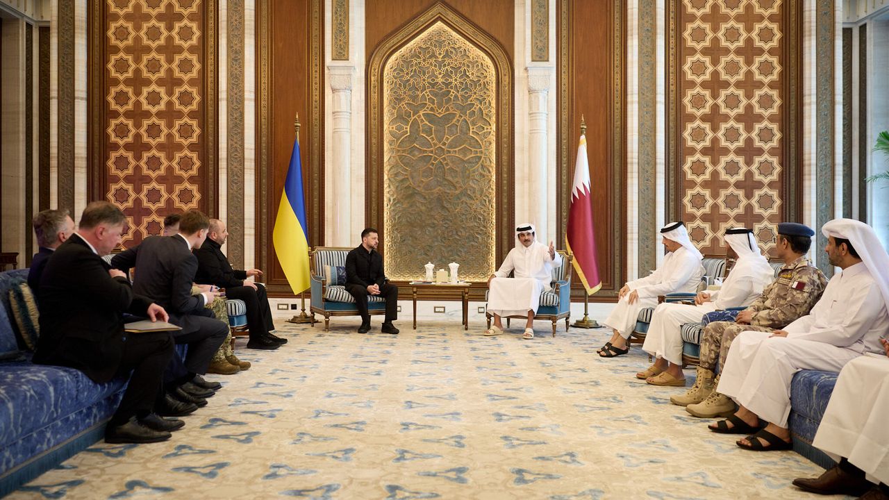 Ukrayna Devlet Başkanı Volodimir Zelenskiy, Katar'ın başkenti Doha'da, Katar Emiri Şeyh Temim bin Hamed Al Sani ile bir araya geldi.
